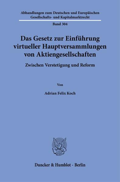 'The Act on the Introduction of Virtual General Meetings of Stock Corporations. Between Continuity and Reform': This thesis examines the Act on the Introduction of Virtual General Meetings of Stock Corporations of July 26, 2022. It traces the path of this long-debated idea from the pandemic legislation of the GesRuaCOVBekG to the law now in force. The establishment of the virtual general meeting is assessed as generally successful, but the thesis also identifies several shortcomings, for which it presents a specific catalog of measures for legislative improvement.