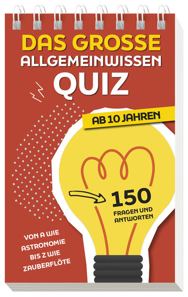 Teste dein Wissen mit 150 kniffligen Fragen und finde heraus, wer in deiner Familie oder in deinem Freundeskreis der wahre Quiz-Meister ist! Egal ob du allein oder gemeinsam mit deiner Familie oder Freunden spielst, dieser handliche Quiz-Block bietet dir spannende Fragen aus verschiedenen Bereichen des Allgemeinwissens. Perfekt für Kinder ab 10 Jahren und Erwachsene, die Spaß am Rätseln haben. Wer kennt die richtige Antwort? Wer muss raten? Werde mit uns zum Quizchampion und lerne ganz nebenbei noch neue Fakten dazu. Denn im übersichtlichen Lösungsteil findest du nicht nur die richtigen Antworten, sondern auch spannende Hintergrundinformationen, die dein Wissen vertiefen. Entdecke es jetzt und bringe den Spielspaß in dein Zuhause!