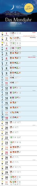 Das Original-Mondjahr von Paugger-Poppe als Streifenkalender. Extra-schmal und doch alles drin: 12 Monatsseiten mit allen Symbolen und mondrelevanten Informationen für jeden Tag. Mit 12 stimmungsvollen Mondfotos von Gerhard Eisenschink.
