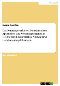 Bachelorarbeit aus dem Jahr 2018 im Fachbereich BWL - Customer-Relationship-Management, CRM, Note: 1,7, Hochschule für angewandtes Management GmbH, Sprache: Deutsch, Abstract: Bei der Arbeit handelt es sich um eine quantitative Analyse mithilfe eines Fragebogens des Nutzungsverhalten deutscher Konsumenten von stationären Apotheken und Versandapotheken. Es wurde eine Repräsentativität erreicht und die Ergebnisse in Handlungsempfehlungen.Es wurde das Nutzungsverhalten der Konsumenten von klassischen, stationären und Versandapotheken gegenübergestellt. Der erste Teil der Arbeit geht auf die Grundlagen des deutschen Apothekenmarktes eingegangen (Sortiment, Marktstrukturen, aktuelle Studienergebnisse). Der zweite Teil zeigt die empirische Methode auf und die gewählte Stichprobe. Im dritten Teil werden die Ergebnisse des Fragebogens dargestellt. Hierzu werden die Ergebnisse der Befragung auf die vier vorab aufgestellten Hypothesen ausgewertet und diese bestätigt bzw. widerlegt. Im Anschluss werden diese Ergebnisse kritisch diskutiert und Handlungsempfehlungen dargestellt.Im Rahmen einer EU-Barometer-Umfrage wurden 27.901 Personen aus dem Europäischen Raum zu ihrer Internetnutzung befragt. Das Ergebnis besagt, dass 76% täglich das Internet nutzen.2 Ebenfalls abgefragt wurde der Nutzungsgrad von Online-Gesundheits- und Pflegeservice. Hierbei gaben nur 18%3 an, dass sie diese schon mal genutzt haben. Diese und auch andere Studien zeigen, dass aufgrund der bereits bestehenden Digitalisierung des Alltags auch das Gesundheitswesen großes Potential hätte und hat. Dies zeigt die Möglichkeit für den Wandel.