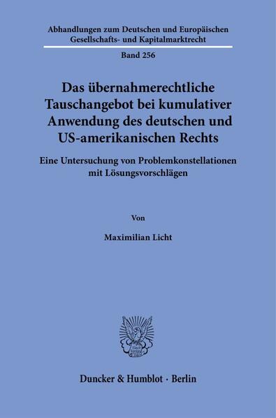 'The Exchange Offer under Takeover Law in the Event of Cumulative Application of German and US law. An Examination of Problem Constellations with Solution Proposals': The author examines problem constellations that arise when carrying out an exchange offer under takeover law. A particular focus is on analyzing the compatibility of the requirements of German and US takeover law. The author analyzes in which takeover constellations a cumulative application of the two takeover regimes occurs and how resulting conflicts of law can be resolved.