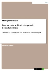 Studienarbeit aus dem Jahr 2011 im Fachbereich Jura - Datenschutz, Note: 1,6, Universität Erfurt, Veranstaltung: Leitung und Management von Einrichtungen der Behindertenhilfe, Sprache: Deutsch, Abstract: Datenschutz spielt in der heutigen Gesellschaft eine immer größer werdende Rolle. Man denke dabei zum Beispiel an die modernen Medien, wie das Internet oder das Mobiltelefon, bei denen persönliche Daten scheinbar wahllos an andere Menschen weitergegeben und veröffentlicht werden. Aber nicht nur im privaten Bereich, sondern vor allem auch in Organisationen, Einrichtungen und Unternehmen müssen Vorschriften zum Datenschutz beachtet und umgesetzt werden. In folgender Arbeit möchte ich dahingehend, nach einer kurzen Erläuterung zum Thema Datenschutz an sich, auf Gesetze, die vor allem im Bereich der Behindertenhilfe relevant sind, eingehen und diese kurz erklären. Ausgehend davon sollen praktische Maßnahmen dieser gesetzlichen Grundlagen in Einrichtungen der Behindertenhilfe vorgestellt werden, wobei vor allem darauf Bezug genommen werden soll, welchen Pflichten Menschen in leitenden Postionen nachkommen müssen und wie sich die rechtliche Lage dazu darstellt.Ich werde innerhalb der Arbeit auf einige Paragraphen verschiedener Gesetze eingehen, die in der Arbeit zum Zwecke der Übersichtlichkeit nicht vollständig aufgeführt werden, sondern anhand der originalen Gesetzestexte mithilfe der Angaben im Literaturverzeichnis, nachgelesen werden können.