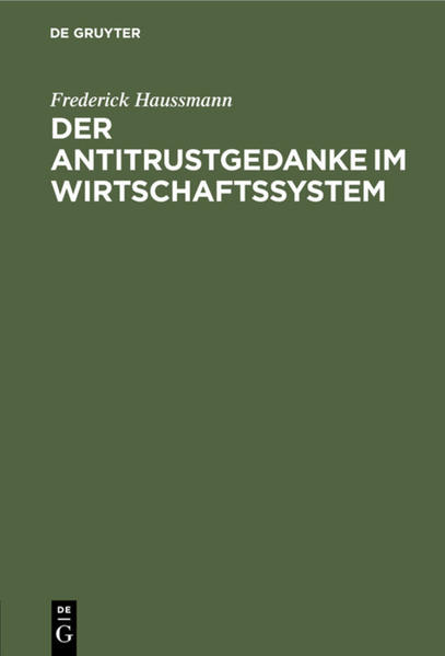 Frontmatter -- VORWORT -- ANMERKUNG DES HERAUSGEBERS -- INHALTSÜBERSICHT -- A. DER ANTITRUSTGEDANKE IM WIRTSCHAFTSSYSTEM -- B. ANMERKUNGEN UND QUELLENANGABEN -- C. ANHÄNGE