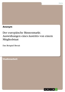 Studienarbeit aus dem Jahr 2021 im Fachbereich Jura - Europarecht, Völkerrecht, Internationales Privatrecht, Note: 13 Punkte, Türkisch-Deutsche Universität, Sprache: Deutsch, Abstract: In dieser Arbeit wird die Austrittsmöglichkeit der Mitgliedsstaaten aus der EU untersucht. Insbesondere wird der Vorgang an sich und Folgen, die daraus für den europäischen Binnenmarkt entstehen, zur Materie. Das Ganze wird an dem Beispiel des Brexits erklärt und anhand des konkreten Verlustes des Vereinigten Königreichs als Mitgliedsstaat aufgegriffen.Der europäische Binnenmarkt ist eine der wichtigsten Errungenschaften der Europäischen Union (EU) und wird mit den Grundfreiheiten, die sie garantiert, als eine der tragenden Säulen der EU deklariert. Mit Anbruch des 21. Jahrhunderts und der steigenden Anzahl an Krisen, sei es von der Finanzkrise im Jahre 2007 bis hin zur Flüchtlingskrise 2015, wurden aber auch vielmals Schattenseiten der EU und damit einhergehende Kritik aufgeworfen. Mithin entstanden über die Zeit zunehmende Diskussionen unter den Mitgliedsstaaten über einen möglichen Austritt aus der Europäischen Union.