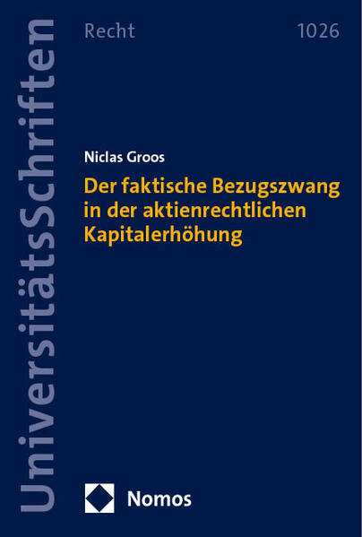 Niclas Groos<p>Die Arbeit untersucht, ob und inwieweit sich die Folgen eines niedrigen Bezugspreises für die Bestandsaktionäre auf die Zulässigkeit von Bezugsrechtskapitalerhöhungen auswirken. Dem sog. faktischen Bezugszwang liegt die Überlegung zugrunde, dass die Aktionäre zur Vermeidung einer Verwässerung faktisch gezwungen sein könnten, ihr Bezugsrecht auszuüben. Der Autor widmet sich den Grundlagen, Voraussetzungen und Folgen des faktischen Bezugszwangs. Dabei zeigt er auf, dass es sich beim faktischen Bezugszwang um eine Rechtsfigur handelt, die im Einzelfall den Handlungsspielraum bei der Festlegung des Bezugspreises beschränken kann und die mit den bewährten Mitteln des Aktienrechts einzufangen ist.</p>