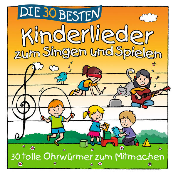 DIE 30 BESTEN KINDERLIEDER ZUM SINGEN UND SPIELEN sind der beste Soundtrack für einen gelungenen Spieltag, egal ob in der Kita oder Zuhause. 30 fröhliche Kinderlieder-Klassiker sorgen für gute Laune und animieren zum Mitmachen, Tanzen und Singen. Titel wie "1,2,3 im Sauseschritt", "Bei Müllers hat?s gebrannt", "Teddybär, Teddybär, dreh dich um", "Von Kopf bis Fuß" oder "Das Spiel- und Bewegungslied" lassen keine Langeweile aufkommen.