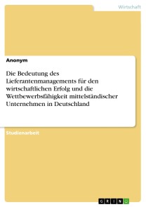 Die Bedeutung des Lieferantenmanagements für den wirtschaftlichen Erfolg und die Wettbewerbsfähigkeit mittelständischer Unternehmen in Deutschland