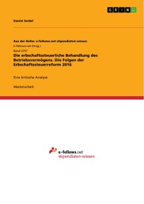 Masterarbeit aus dem Jahr 2018 im Fachbereich BWL - Rechnungswesen, Bilanzierung, Steuern, Note: 1,3, Martin-Luther-Universität Halle-Wittenberg (Institut für Betriebswirtschaftslehre), Sprache: Deutsch, Abstract: Das BVerfG bestätigte mit seinem Urteil vom 17. Dezember 2014, dass das System der Begünstigungsregelungen des ErbStG a.F. im Wesentlichen als geeignet eingeschätzt wird. Weiterhin bemerkte das Gericht die Notwendigkeit der Vergünstigungen für unternehmerisch gebundenes Vermögen, v.a. für Familien-KMU. Allerdings wurde die konkrete Ausgestaltung der Vorschriften als Missachtung des Grundsatzes der Gleichbehandlung gem. Art. 3 Abs. 1 GG gesehen. Deshalb wurde der Gesetzgeber dazu verpflichtet, zum 01. Juli 2016 ein modifiziertes ErbStG zu implementieren. Die neuen Vergünstigungsvorschriften fallen v.a. durch ihre hohe Komplexität auf. Das beginnt bei der Ermittlung des begünstigten Vermögens und setzt sich bei den verschiedenen Steuerbefreiungsmöglichkeiten fort. Besonders hervorzuheben ist die neue Investitionsklausel zur nachträglichen Umwandlung von Verwaltungsvermögen in begünstigtes Vermögen und der neue Familienabschlag, der vor Anwendung einer Steuerbefreiungsoption einen Abschlag gewährt. Für Großerwerbe mit einem begünstigten Vermögen von mehr als 26 Mio. Euro wurden zwei neue Verschonungsregelungen eingeführt: das Abschmelz- und das Erlassmodell. Insbesondere die Verschonungsbedarfsprüfung eröffnet einige neue Gestaltungsvarianten. Dazu wurden mögliche Überlegungen im Rahmen der kritischen Analyse der Folgen der Erbschaftsteuerreform 2016 aufgezeigt. Die Ebene der Erwerber wird in Zukunft vermehrt in den Vordergrund rücken. Diesbezüglich wird die Familienstiftung in der Literatur als Gewinner der Reform bezeichnet. Außerdem werden minderjährige Familienangehörige in den Blickpunkt treten. Insgesamt sind auch weitere Folgen nicht außer Betracht zu lassen. Das neue Erbschaftssteuerrecht mit seinen vielen Regelungen und Voraussetzungen wird finanzielle und materielle Aufwendungen erfordern. Der daraus resultierende Einfluss auf Wettbewerbsbedingungen darf nicht unterschätzt werden, weil eine zu hohe Erbschaftssteuerbelastung nötige Investitionen und Personalentscheidungen verhindert. Grundsätzlich werden die neuen Regelungen des ErbStG für weitere Diskussion sorgen, weil an einigen Vorschriften verfassungsrechtliche Bedenken haften.