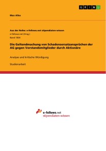 Max AllesStudienarbeit aus dem Jahr 2010 im Fachbereich Jura - Zivilrecht / Handelsrecht, Gesellschaftsrecht, Kartellrecht, Wirtschaftsrecht, Note: 16 Punkte, Universität Regensburg, Veranstaltung: Seminar - Kapitalgesellschaftsrecht im Wandel der Zeit, Sprache: Deutsch, Abstract: Die kollegiale Beziehung zwischen dem Leitungsorgan Vorstand und dem Kontrollorgan Aufsichtsrat, sowie die Befürchtung der Aufsichtsratsmitglieder, eine etwaige eigene Nachlässigkeit in Ausübung der präventiven Kontrolle würde aufgedeckt werden, waren lange Zeit Hemmschwelle gegen die Geltendmachung von Organhaftungsansprüchen. Dieses Versagen der Zuständigkeitsordnung der Gesellschaft im Einzelfall führte zur Notwendigkeit der Geldendmachung von Ersatzansprüchen der Gesellschaft durch eine Aktionärsminderheit. Mit dem UMAG hat der Gesetzgeber den Versuch unternommen, der Verfolgung von Schadensersatzansprüchen der Gesellschaft gegenüber ihren Organen zu mehr praktischer Relevanz zu verhelfen. Dennoch, vermögen es weder das bestehende strikte materielle Haftungsregime, noch die strengen „ARAG-Grundsätze“ oder die mit dem UMAG eingeführte Aktionärsklage, zu verhindern, dass die hinreichende Effektivität der Organhaftung bemängelt wird. Zweifelsohne haben die Aufarbeitung der Finanzkriese, sowie die Korruptionsaffäre der Siemens AG und das entschiedene Vorgehen der Gesellschaft gegen ihre ehemaligen Vorstände neue Maßstäbe im Organhaftungssektor gesetzt, am Bestehen eines Effektuierungsproblems hat sich jedoch nichts geändert. Vor diesem Hintergrund beschäftigt sich die vorliegende Abhandlung mit der Geltendmachung von Schadensersatzansprüchen der AG gegen Vorstandsmitglieder durch Aktionäre, beschränkt sich jedoch auf die Aktionärsklage und das damit verbundene Klagezulassungsverfahren nach § 148 AktG. Akzentuiert werden einzelne problematische Gesichtspunkte, die aus Sicht des Autors besonders erwähnenswert sind herausgegriffen, und diese besonders im Kontext des schwierigen Balanceaktes, den der Gesetzgeber zu meistern hat, auf der einen Seite einen effektiven Minderheitenschutz und eine praktisch funktionierende Kontrolle des Verwaltungshandelns zu gewährleisten, und auf der anderen Seite die Handlungsfähigkeit und Leitungsautonomie des Geschäftsleitungsorgans Vorstand zu schützen sowie dem Missbrauch vorzubeugen, diskutiert. Es erfolgt eine Analyse der präzisierten Problembereiche mit anschließender Würdigung dieser im rechtsvergleichenden Zusammenhang unter Berücksichtigung der Erfahrungen benachbarter Rechtsordnungen. Abschließend wird jeweils beurteilt, inwieweit dem Gesetzgeber vorgenannter Spagat gelungen ist und es werden Lösungsvorschläge unterbreitet.