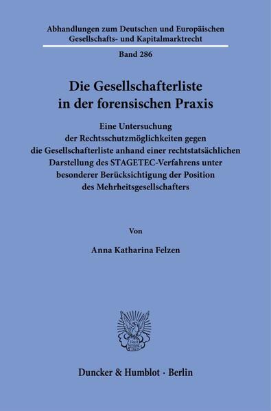 Eine Untersuchung der Rechtsschutzmöglichkeiten gegen die Gesellschafterliste anhand einer rechtstatsächlichen Darstellung des STAGETEC-Verfahrens unter besonderer Berücksichtigung der Position des Mehrheitsgesellschafters