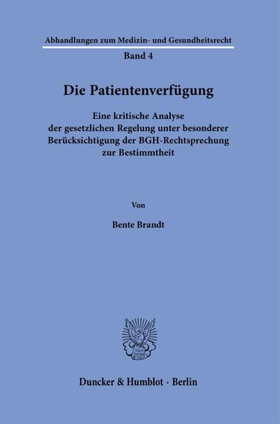 »The Living Will. A Critical Analysis of the Legal Regulation with Special Consideration of the Federal Court of Justice's (BGH) Jurisdiction on Specificity«: This study reevaluates legal provisions related to living wills, concentrating on two key aspects: analyzing and evaluating the Federal Court of Justice's (BGH) rulings regarding the specificity of provisions within a living will, and critically evaluating the exclusion of minors from drafting living wills. Concluding, a reform proposal is presented.