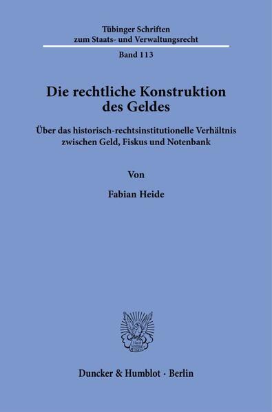 'The Legal Construction of Money. On the Historical-Legal-Institutional Relationship between Money, the Treasury, and the Central Bank': Fabian Heide analyzes the historical legal-institutional conditions of the origin and effects of money in German history and outlines the evolutionary path from the early Middle Ages to the present in a multidisciplinary tour d'horizon. Money proves to be a fiscal instrument of authorities before it was commodified as a medium of exchange in later stages. Along this journey, law plays the central role as a mode of governance and institutionalization. Money, after all, is legally constructed.