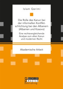 Islam QerimiZusammenfassend geht es in dieser Arbeit überwiegend um den Vergleich von zwei unterschiedlichen Rechtssystemen: dem traditionellen Kanun bei den Albanern und dem modernen staatlichen Recht. Diese werden von Seiten zwei verschiedener Rechtsgebiete (dem zivil- und strafrechtlichen Bereich) in Albanien und im Kosovo behandelt. Das Strafrecht dient dabei dem Schutz von Rechtsgütern und kann im Kanun ebenso nach einem Ausgleich für eine Rechtsverletzung zwischen Privaten suchen (entweder Blutrache und oder Wiedergutmachung des Schadens). Hierbei werde ich passende Beispiele aus der Literatur, den staatlichen Gerichten und aus Interviews mit außergerichtlichen Konfliktschlichtern und Ältesten anführen. Zur Eingrenzung des Themas der Arbeit habe ich folgende Fragen aufgestellt: Die erste Frage – Die außergerichtliche Konfliktbeilegung durch Mediation und der Schlichtung nach dem Gewohnheitsrecht bei den Albanern hat eine bedeutende Rolle im gesellschaftlichen Zusammenleben eingenommen. Die zweite Frage – Rache und Blutrachedelikte bei den Albanern sind im Gegensatz zu früheren Zeiten heute rückläufig. Die dritte Frage – Ein Bedarf an außergerichtlichen Konfliktbeilegungsmöglichkeiten ist sowohl in Albanien als auch im Kosovo vorhanden. Die vierte Frage – In den Rechtssystemen und den Konfliktlösungsmechanismen der zwei Forschungsländer Albanien und Kosovo finden sich Parallelen. Anhand dieser Behauptungen möchte ich die Themenschwerpunkte der Arbeit näher definieren und am Ende der Arbeit feststellen, inwiefern meine Annahmen richtig waren.