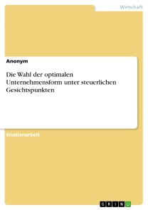 Die Wahl der optimalen Unternehmensform unter steuerlichen Gesichtspunkten