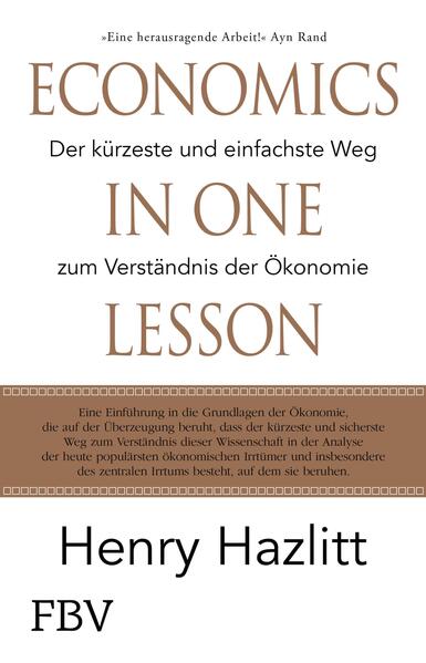 In kaum einem Bereich spuken so viele Irrtümer herumwie in der Ökonomie. Zudem sind sie so weit verbreitet,dass sie als gültige Lehrmeinung angesehen werden. Themen wie staatliche Zinsmanipulation, Sparen, Inflation,Mindestlöhne oder Branchenrettung, wie die der Banken,sind aktueller und missverstandener denn je.Deshalb ist es wichtig zu wissen, was wirklich hinter denBegriffen steckt, wie sie zusammenwirken und welche praktischen Folgen (staatliche) Eingriffe haben. Niemand könntedas besser als Henry Hazlitt. Als einer der ganz Großen derÖsterreichischen Schule wird er in einem Atemzug mitMises, Hayek und Rothbard genannt. Seine Begabung fürelegante, populäre Darstellungen wirtscha licher Zusammenhänge haben dieses Buch entstehen lassen. In 24 kurzweiligen Kapiteln vermittelt er sein umfassendes Wissen,von Steuern über die Idee der Vollbeschäfzigung bis zuPreisen und Inflation