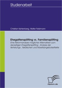 Inhaltsangabe:Einleitung:Die Motivation unserer Arbeit leitet sich zum einen aus der Wahl unseres Studienschwerpunktes im Bereich Steuerwissenschaften ab und wurde durch die anhaltende politische Diskussion über die Zielgenauigkeit von familienpolitischen Instrumenten unterstützt und ob eine effektive Förderung von Familien überhaupt durch das Steuerrecht herbeigeführt werden kann. Allerdings wollen wir diesen Punkt, also inwiefern das deutsche Steuerrecht geeignet ist Familienpolitik zu betreiben, außen vor lassen, da es den Rahmen unserer Arbeit sprengen würde. Stattdessen widmen wir uns der Frage, inwiefern sich Reformalternativen auf die bestehenden Schwächen der derzeitigen Ausgestaltung des Ehegattensplittings auswirken. Im Fokus steht dabei vor allem, ob man Kinder in die Überlegungen mit einbeziehen sollte, um so einen weiteren Lastenausgleich zu schaffen und darüber hinaus, wie die negativen Arbeitsanreize, die für den Zweitverdiener, also häufig für die Frauen in Deutschland, aus dem Splittingverfahren resultieren, eingeschränkt werden können. Gerade in diesem Punkt besteht großer Handlungsbedarf von Seiten der deutschen Politik, da auch die EU schon mehrfach darauf hingewiesen hatte das deutsche Steuersystem, im Sinne des Gender-Mainstreamings, also der Gleichstellungsorientierung von Mann und Frau, zu überprüfen.Ziel dieser Arbeit ist mögliche Reformalternativen zur derzeitigen Ehegattenbesteuerungen zu diskutieren. Dabei werden die Autoren wie folgt vorgehen. In Abschnitt 2 wird das Ehegattensplitting vorgestellt. Zunächst werden die Grundzüge des Ehegattensplittings anhand von Rechenbeispielen erläutert. Im Anschluss werden die Autoren die wesentlichen Kritikpunkte des derzeitigen Besteuerungsverfahrens herausarbeiten. Vor allem die negativen Arbeitsanreize für den Zweitverdiener als auch die fehlende Berücksichtigung von Kindern als Teil der Familie werden hier genannt. Auf Basis dieser Kritikpunkte haben die Autoren die Leitfrage dieser Arbeit formuliert.Kann eine Reform des Ehegattensplittings eine ausreichende Berücksichtigung von Kindern in der Veranlagung gewährleisten und gleichzeitig positive Arbeitsanreizen für den Zweitverdiener schaffen?In Abschnitt 3 wird ein Katalog möglicher Reformalternativen beschrieben. Dieser Reformkatalog soll dann schrittweise eingegrenzt werden. Mit Hilfe von Daten aus der Mikrosimulationsanalyse sollen die Reformoptionen zunächst einer vertikalen Umverteilungsanalyse unterworfen werden. […]