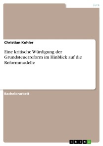 Bachelorarbeit aus dem Jahr 2020 im Fachbereich Jura - Steuerrecht, Note: 1,2, Duale Hochschule Baden-Württemberg, Villingen-Schwenningen, früher: Berufsakademie Villingen-Schwenningen, Sprache: Deutsch, Abstract: Ziel dieser Arbeit ist es, die in den letzten Jahren erschienenen Reformmodelle miteinander zu vergleichen und eine Rangfolge zu ermitteln, welches Modell am besten für die Grundsteuerreform geeignet ist. Dazu werden in dieser Arbeit in einem ersten Schritt die Grundlagen zur Grundsteuer näher gebracht. Weiterführend werden die Ursachen für die Wertverzerrungen des aktuellen Rechts veranschaulicht. Hier wird auf das Urteil vom 10.04.2018 vom BVerfG zurückgegriffen. Im weiteren Verlauf werden Modelle der Grundsteuerreform näher beleuchtet. Bei diesem Punkt werden vier Modelle näher betrachtet. Diese sind das Äquivalenzmodell, das Kombinationsmodell, das Verkehrswertmodell und das Bundes-Modell. Neben diesen Modellen gibt es u.a. noch das Bodenwertmodell, das Kostenwertmodell und das Mietwertmodell. Diese drei aufgeführten Modelle werden nicht Teil dieser Arbeit sein. Die Modelle unterscheiden sich darin, dass entweder eine wertunabhängige oder eine wertabhängige Bemessungsgrundlage gegeben ist. Die Auswahl der vier Modelle, die in der Arbeit berücksichtigt werden, hat folgenden Hintergrund: Beim Äquivalenzmodell handelt es sich um ein flächenorientiertes, wertunabhängiges Modell. Das Kombinationsmodell besteht aus einer flächen- bzw. wertunabhängigen und aus einer wertabhängigen Bemessungsgrundlage. Die Bemessungsgrundlage bei den anderen zwei Modellen ist wertabhängig. Zudem ist die Berücksichtigung des Bundes-Modell aufgrund der aktuellen Gesetzesänderung unumgänglich. Für die Modelle besteht ein großer Spielraum bei der Ausgestaltung der Rechtsgrundlage, da es sich bei der Grundsteuer um ein Massenverfahren handelt. Dennoch müssen die Grenzen des Spielraums des Gesetzgebers eingehalten werden. Zudem soll die Steuererhebung nach der Reform einfacher und mit weniger Aufwand verbunden sein, als dies bei der Einheitsbewertung der Fall ist. Ebenfalls muss die Aufkommensneutralität gewährleistet werden, unabhängig davon, welches Modell schlussendlich in den einzelnen Bundesländern angewendet wird. Nach der kritischen Würdigung der einzelnen Modelle werden diese anschließend anhand von ausgewählten Kriterien in einem Reformvergleich miteinander verglichen. Somit wird als Ergebnis festgestellt, welches das am besten geeignete Modell für die Grundsteuerermittlung ist. Zu guter Letzt wird diese Arbeit durch eine Zusammenfassung und einen Ausblick abgerundet.