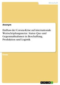 Essay aus dem Jahr 2020 im Fachbereich BWL - Beschaffung, Produktion, Logistik, Note: 1,0, FOM Hochschule für Oekonomie & Management gemeinnützige GmbH, Berlin früher Fachhochschule, Sprache: Deutsch, Abstract: In dieser Arbeit wird zunächst die Automobilindustrie anhand ihrer wirtschaftlichen Kennzahlen vorgestellt. In weiteren Schritten werden die durch die Coronakrise entstandenen Herausforderungen für die Automobilindustrie im Bereich der Beschaffung skizziert und Lösungsvorschläge unterbreitet.Die Coronakrise schlägt sich in sämtlichen wirtschaftlichen Kennzahlen in der gesamten Welt nieder und hat diese in eine Rezession gestürzt. 2020 verzeichnet der Welthandel einen Rückgang um 9% Prozent und die globale Wirtschaftsleistung geht im Vergleich zu 2019 um 4% zurück. Zeitweise verringerte sich das weltweit bewegte Containervolumen von 750 Millionen Containern aus 2019 um 9%. Deutsche Frachthäfen kalkulierten sogar mit einem Rückgang von 30%. In Deutschland sind durch die Folgen der Coronakrise mehr als 6 Millionen Menschen in Kurzarbeit und es sind gegenüber dem Vorjahr mit 2,8 Millionen arbeitslosen Bürgern 637.000 Menschen mehr erwerbslos. Die deutsche Bundesregierung investiert mehr als 800 Milliarden Euro, um gegen die negativen Folgen der Coronakrise anzukämpfen. Unter den betroffenen Industriezweigen befindet sich auch die Autoindustrie. Bedingt durch die Coronakrise erlebt diese momentan den stärksten Markteinbruch ihrer Geschichte und kalkuliert weltweit mit einem Verkaufsrückgang von 22% im Jahr 2020. Die deutsche Automobilindustrie erreichte im April mit nur 10.900 produzierten Autos einen Rückgang von 97% gegenüber dem Vorjahresmonat und exportierte in diesem Monat mit nur 17.600 PKW 94% weniger als im April 2019. Im Zuge der Krise sind die Automobilhersteller neben dem Nachfrageeinbruch auch mit unterbrochenen Lieferketten und der damit verbundenen stillstehenden Produktion konfrontiert.