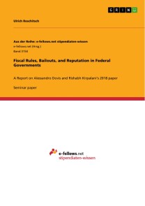 Seminar paper from the year 2019 in the subject Economics - Other, grade: 1.0, University of Mannheim (Department of Economics), course: Topics on Monetary Union, language: English, abstract: The question of why regions, that cooperate in a federal union, overborrow—meaning that they issue more debt than would be beneficial from a point-of-view of intertemporal efficiency—is of utmost relevance in many contexts. Traditionally, the role of fiscal rules (i.e. caps on debt issuance levels with punishment payments upon violation) has been emphasized in overcoming the root of the problem: that central authorities in federal unions cannot commit to not use their funds to bail out overindebted members at the expense of other members. Dovis & Kirpalani, however, ask an important question: what happens if the central authority also cannot commit to enforcing the fiscal rules? In their paper, they show that if the central authority has a low reputation (i.e. low probability of enforcing the fiscal rules and the no-bailout-clause), fiscal rules are not only ineffective, but they can even lead to a higher debt issuance and exacerbate the overborrowing problem.This report aims at outlining Dovis & Kirpalani’s reasoning for their central claim, thus sketching out their proofs and providing intuition for their results. Furthermore, a short assessment of their paper is provided, centering on validity and possible extensions.