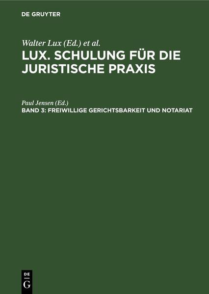 Jensen, PaulFrontmatter -- Vorwort -- Inhaltsverzeichnis -- 1. Kapitel. Beim Notar -- 2. Kapitel. Beim Vormundschaftsgericht -- 3. Kapitel. Beim Nachlaßgericht -- 4. Kapitel. Beim Grundbuchamt -- 5. Kapitel. Beim Registergericht -- 6. Kapitel. Aufgebotsverfahren -- Sachverzeichnis