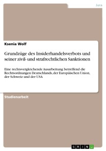 Ksenia WolfStudienarbeit aus dem Jahr 2012 im Fachbereich Jura - Andere Rechtssysteme, Rechtsvergleichung, Note: 1,3, FernUniversität Hagen, Veranstaltung: Abschlussseminar "Rechtsvergleichung im Gesellschaftsrecht", Sprache: Deutsch, Abstract: Die vorliegende Arbeit aus dem Bereich der Rechtsvergleichung im Gesellschaftsrechts befasst sich mit dem in den meisten europäischen Ländern strafrechtlich verbotenen Tatbestand des Insiderhandels, i.e. Durchführung der Aktientransaktionen auf Basis öffentlich nicht bekannter Information. Das Verbot sowie dessen Prävention in den benannten Rechtsordnungen werden vergleichend analysiert, wobei die auf europäischer Ebene geplanten Neuerungen durch die Marktmissbrauchsverordnung und die neue Insider-Richtlinie sowie in der schweizerischen Rechtsordnung die geplante Änderung des Börsengesetzes berücksichtigt werden.Das Kapitalanlegermusterverfahren im Fall Daimler AG konnte nur im Bezug auf die EuGH-Vorlage und den Schlussantrag des Generalanwalts beleuchtet werden, da das Urteil in der Geltl-Entscheidung des EuGH (Rs. C-19/11) erst nach dem Verfassen dieser Arbeit gesprochen wurde.Des weiteren werden die Regelungen des Insiderhandels der USA analysiert, die zwar als Ursprungsrechtsordnung für die europäischen Regelungen gelten. Wie jedoch in der vorliegenden Arbeit aufgezeigt wird, basieren mittlerweile die Schutz- bzw. Verbotssysteme in Europa und den USA auf unterschiedlichen Grundsätzen.
