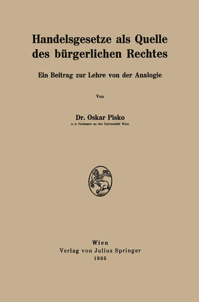 Pisko, OskarDieser Buchtitel ist Teil des Digitalisierungsprojekts Springer Book Archives mit Publikationen, die seit den Anfängen des Verlags von 1842 erschienen sind. Der Verlag stellt mit diesem Archiv Quellen für die historische wie auch die disziplingeschichtliche Forschung zur Verfügung, die jeweils im historischen Kontext betrachtet werden müssen. Dieser Titel erschien in der Zeit vor 1945 und wird daher in seiner zeittypischen politisch-ideologischen Ausrichtung vom Verlag nicht beworben.