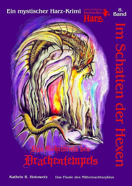 ~Im Schatten der Hexen~ Band 8 - "Das Geheimnis des Drachentempels" Das furiose Finale des 2. Zyklus (Mitternachtszyklus) der "Im Schatten der Hexen" - Bestseller-Reihe Tote Tiere und menschliche Leichenteile, die im Hochharz entdeckt werden, lassen Kommissar Rogge befürchten, dass sich vielmehr hinter diesen Funden verbergen könnte. Sein Besuch bei Gerda Hoffmann beruhigt ihn in keinster Weise sondern schürt seine Vermutung über geheime Intrigen, welche wahrscheinlich noch viel umfassender sind, als sich alle zunächst vorstellen können. Gerda Hoffmann grübelt über Kalle Rogges Ängste nach und bedrückende Fragen drängen sich ihr auf: Was ist im Jahre 1333 in diesen Gefilden passiert? Welches mysteriöse Geheimnis wirft seinen langen dunklen Schatten über den Harz? Während die befreundeten Ermittler, Moritz Sattler und Kalle Rogge, zusammen mit ihrem neuen Kollegen Sauerzweig fieberhaft nach den wahren Ursachen der Vorkommnisse suchen, zieht ein mörderischer Bund seine unsichtbaren Fäden zu einem tödlichen Netz zusammen. Kann es noch gelingen, das apokalyptische Geheimnis des Drachentempels rechtzeitig zu lüften?