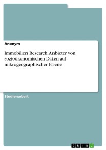 Studienarbeit aus dem Jahr 2023 im Fachbereich BWL - Marktforschung, Note: 1,3, Northern Business School, Veranstaltung: Immobilienresearch, Sprache: Deutsch, Abstract: Entdecken Sie, wie Sie sozioökonomische Daten im Mikromaßstab nutzen, um präzise Einblicke in Marktverhalten, Kundenbedürfnisse und Standortanalysen zu gewinnen. Diese wissenschaftliche Arbeit zeigt Ihnen, wie Sie den Wert von Immobilienobjekten steigern und fundierte Entscheidungen treffen können. Dieses Ebook richtet sich an Immobilienexperten, Forscher und alle, die in der Immobilienbranche tätig sind und nach den besten Methoden suchen, um Daten in tiefgreifende Erkenntnisse umzuwandeln. Optimieren Sie Ihre Immobilienforschung und beherrschen Sie die Kunst der datengesteuerten Entscheidungsfindung.Im Fokus der Betrachtung stehen Anbieter, die sozioökonomische Daten auf mikrogeographischer Ebene anbieten. Das primäre Ziel der Arbeit ist es, den Markt der Datenanbieter zu analysieren, um herauszustellen, welche unterschiedlichen Anbieter existieren und welche sozioökonomischen Daten diese bereitstellen. Dazu findet eine Untersuchung des für das Immobilienresearch generierten Mehrwertes statt. Weiterhin wird untersucht, welche Märkte die Anbieter abdecken und ob die Qualität der Daten einen Nutzen für die praktische Anwendung aufweist. Darüber hinaus sind typische und besondere Inhalte zu klassifizieren. Neben der generellen Betrachtung der Akteure werden zwei namhafte Datenanbieter einem Vergleich anhand der Konzepte, ihres Leistungsspektrums, den abrufbaren sozioökonomischen Daten auf Ebene des Mikrostandorts und den damit verbundenen Kosten für den Kunden unterzogen. Ferner wird ein Einblick in die theoretischen Grundlagen geboten. Abgeleitet aus der Zielsetzung dieser Arbeit resultiert die zentrale Forschungsfrage: Welchen Mehrwert liefern Anbieter von sozioökonomischen Daten dem Immobilienresearch auf mikrogeographischer Ebene? Aus dieser Fragestellung ergeben sich weiterführende Fragen: Welche sozioökonomischen Daten stehen durch die Anbieter mikrogeographisch zur Verfügung? Wie sind Daten von Anbietern aufzubereiten bzw. wie sind diese durch den Kunden weiterzuverarbeiten, damit ein praktischer Nutzen erzielt wird? Der Beantwortung dieser Forschungsfragen liegt eine tiefgreifende Analyse bestehender Fachliteratur zugrunde. Dazu werden Inhalte, Publikationen und Ergebnisse empirischer Forschung verwendet. Die Aktualität der Thematik wird durch gegenwärtige Internetquellen hervorgehoben.