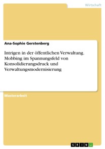 Masterarbeit aus dem Jahr 2015 im Fachbereich Führung und Personal - Sonstiges, , Veranstaltung: Master-Studiengang Public Administration (MPA), Sprache: Deutsch, Abstract: Anlass der Arbeit ist, den aktuellen Umgang mit dem Mobbingphänomen innerhalb der öffentlichen Verwaltung mit Blick auf die Berliner Kommunalverwaltung unter Berücksichtigung des Wertewandels zu untersuchen. Der Einfluss der Verwaltungsmodernisierung und der Haushaltskonsolidierung soll bei der Entstehung von Mobbing diskutiert werden. Hierbei soll bewertet werden, ob die Rahmenbedingungen in dem Umfeld in dem Mobbing stattfindet als mobbinghemmende und mobbingfördernde Faktoren genutzt werden können, um das Mobbingphänomen innerhalb von bürokratischen Organisationen besser zu identifizieren und zu bekämpfen. Bei den ersten Recherchen zu dieser Masterarbeit fiel auf, dass es viele Definitionen des Mobbingphänomens gibt, die allerdings nicht die besonderen Umstände in der öffentlichen Verwaltung erfassen. Hierin wird ein zusätzlicher Grund vermutet, weshalb Mobbing überwiegend umgangssprachlich genutzt wird und nicht als Problem innerhalb von bürokratischen Organisationen gewürdigt wird.Die Masterarbeit beschäftigt sich daher, unter Berücksichtigung der vorherrschenden Theorien von Leymann und Neuberger, mit den Fragen, welche Faktoren Mobbing in der öffentlichen Verwaltung verursachen könnten und welchen Einfluss der Konsolidierungsdruck und die Verwaltungsmodernisierung hierbei haben.Bei einer Ursachenanalyse sollen überwiegend die Einflüsse des Opfers und des oder der Täter sowie der Organisationsstruktur betrachtet werden. Unter Hinzuziehung der mobbingrelevanten Rahmenfaktoren sollen besonders die mobbingfördernden bzw. mobbinghemmenden Einflussfaktoren untersucht werden. Dazu werden vorliegende Untersuchungen aus der Mobbingforschung herangezogen.Ziel der Arbeit soll sein, aufgrund der durchgeführten Ursachenanalyse, die Auslöser für Mobbing in bürokratischen Organisationen aufzuzeigen und mithilfe einer eigenen Definition für Mobbing in der öffentlichen Verwaltung, Vorschläge zur Prävention unter Hinzuziehung der mobbinghemmenden Faktoren des NSM aufzuzeigen.