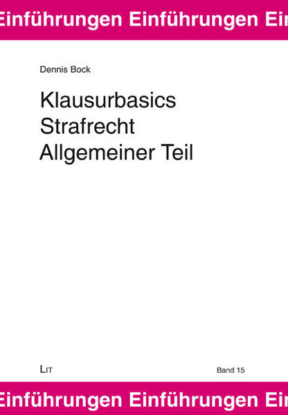 Bock, DennisDas Werk enthält eine kompakte Darstellung des examensrelevanten Pflichtfachstoffes zum Allgemeinen Teil des Strafrechts. Unter Zuhilfenahme von zahlreichen prägnanten Fallbeispielen und Originalentscheidungen aus der Rechtsprechung werden die Grundlagen - Normen, Definitionen und Auslegungsprobleme ("Streitstände") - methodisch orientiert aufbereitet. Dabei wird ein besonderes Augenmerk auf ein allgemeines Strukturverständnis sowie die Darstellung typischer Klausurschwerpunkte gelegt. Auf wissenschaftliche Vertiefung und über das Basiswissen hinausgehende Erläuterungen wird weitgehend verzichtet, wodurch sich das Werk ideal für den Einstieg in das Studium eignet.