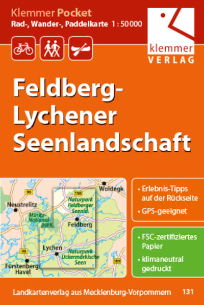 Klemmer, KlausUnser handliches Taschenformat, gefaltet 10 x 15 cm passt es in jede Hemdentasche. Dank Maßstab 1:50.000 viel Karte auf handlichem Blatt. Von Feldberg bis Lychen zum Wandern, Radfahren und Paddeln geeignet! Dazu ein Ortsplan von Feldberg und die Wasserwanderverbindungen von Lychen nach Neustrelitz und Templin. Inhalte wie bei einer Karte im Maßstab 1:25.000. Informationen auf der Rückseite.