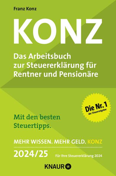 Das Arbeitsbuch zur Steuererklärung für Rentner und Pensionäre. Mit den besten Steuertipps. Mehr Wissen. Mehr Geld. Konz. 2024 / 25. Für Ihre Steuererklärung 2024