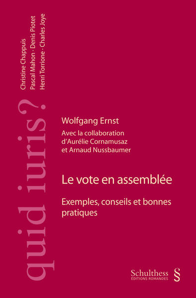 La démocratie n’existe que grâce au vote, que ce soit au sein de grandes ou de petites assemblées, de l’Assemblée fédérale ou des Landsgemeinde, au sein des conseils d’administration ou des associations. Le droit de voter fait partie intégrante de la culture juridique. Il doit être exercé dans le respect des règles applicables, avec intégrité et de manière impartiale et juste. Le vote étant un acte juridique, il convient d’être rigoureux dans son exercice. C’est à cet effet que nous proposons une marche à suivre au travers ce guide qui, bien qu’écrit par un juriste, s’adresse à tout un chacun.