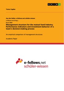 Yunus CagdasAcademic Paper from the year 2021 in the subject Business economics - Investment and Finance, grade: 2,0, University of Hohenheim (Institut für Financial Management), language: English, abstract: The aim of this study is to identify differences in investment behavior - and in particular the special case of a team's decision-making process - as well as possible performance indicators. The research results to be presented should be used as guidance in selecting an appropriate management structure for the mutual fund industry. Before addressing the differing investment behaviors of the two management structures, the special dynamics that can operate within a team in decision making have to be examined. For this said purpose, the relevant literature provides some conflicting theories on decision making.When looking at the proportion of team-managed and single-managed mutual funds, it is observed that team funds have increased at the cost of single-managed funds. Thus, from 1992 to 2015, within all mutual funds, team-managed funds increased from 12% to 57%, while single-managed funds decreased from 88% to 43%. A similar development can be seen in the change of the management structure of a fund in Figure 1: A total of 553 mutual funds, which were previously managed individually, switched to a team fund, whereas only 317 funds changed from a team-managed fund to an single-managed fund.A crossover in the proportion of teams after the global financial crisis in 2008, in times when risk reduction by diversification began to gain in importance, is clearly observable. Thus, it should be in the interest of mutual funds to possess sufficient management diversity to reach an adequate niveau of diversification. As argued by Tom Stevenson, the investment director of Fidelity International, besides gender diversity, diversity in cognition, education and mindset represent a great strength. Research on the mutual fund industry indicates some differences in the investment behavior between team-managed and single-managed mutual funds. Especially concerning teams, different theories of decision making can be found, resulting in different investment styles and performance levels.