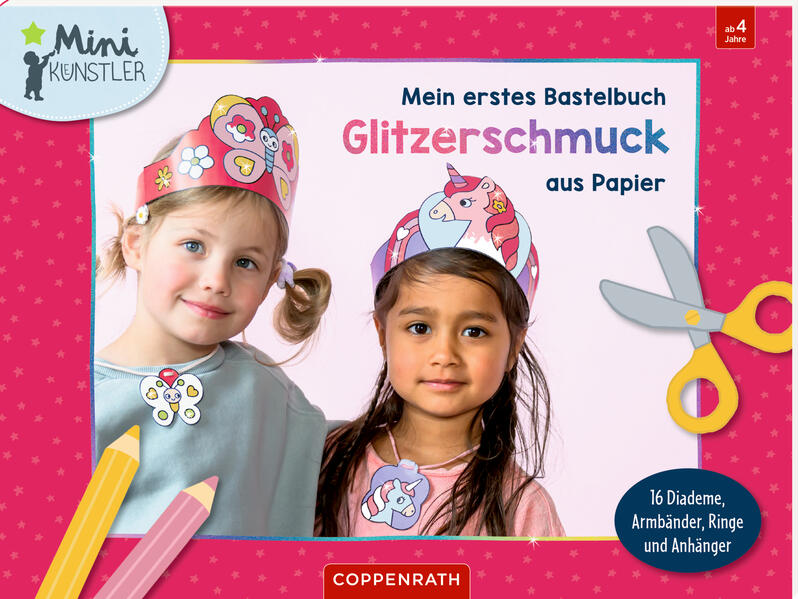 Ein Mal- und Ausschneidebuch für alle kleinen Künstlerinnen und Künstler, die sich selbst süßen Schmuck aus Papier basteln möchten: einfach die Motive nach Lust und Laune ausmalen, ausschneiden und zusammenstecken - fertig! Mit Glitzer auf allen 16 Diademen, Armbändern, Ringen und Anhängern. Zu jedem der 8 Themen (Einhorn, Vögel, Häschen, Schmetterling, Meerjungfrau, Marienkäfer, Kätzchen und Eule) gibt es 2 ähnliche Motive - ideal für beste Freundinnen ab 4 Jahren . Ein perfekter Zeitvertreib für Kindergeburtstage, den Besuch von Freunden oder einfach nur so.