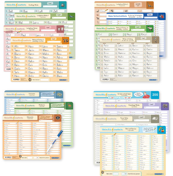 Meine Blitzlesekarten Set 1-4 zur Leseförderung (15 Lerntafeln mit Stift)