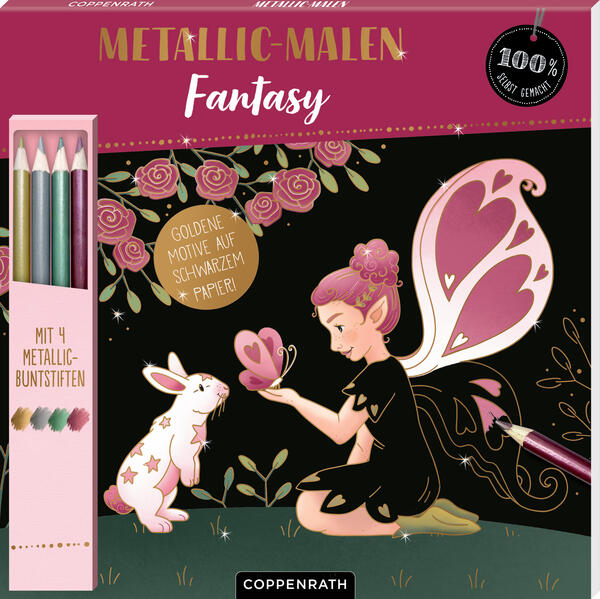 Ein besonders spannender Malblock mit 24 schwarzen Seiten, die mit aufregenden Metallic-Motiven bedruckt sind. Zum Sofort-Loslegen sind 4 wunderschöne Metallic-Buntstifte gleich mit dabei.