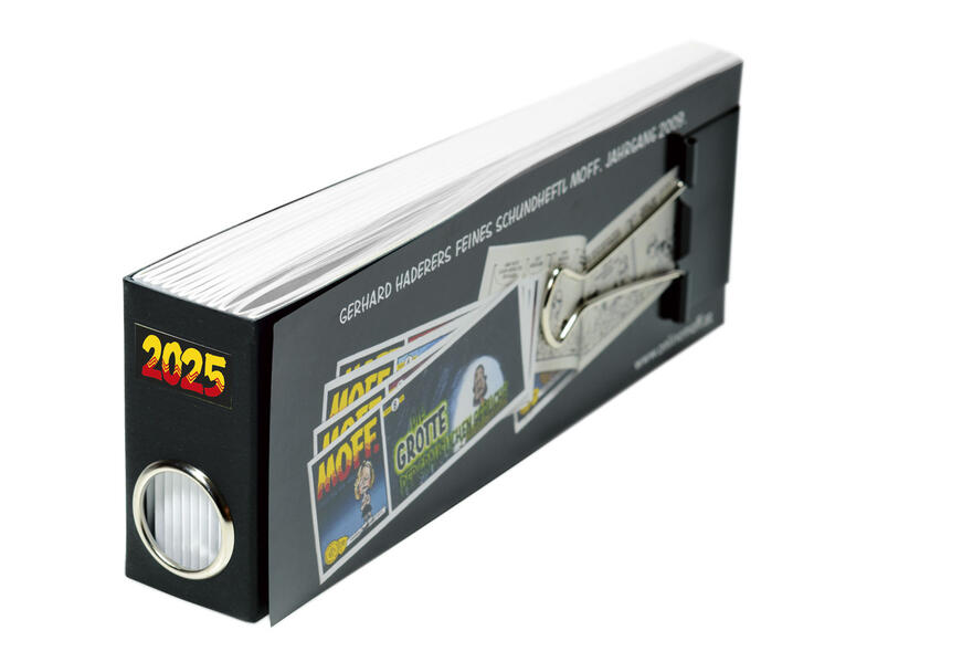 Die MOFF. Jahressammlung 2025 beinhaltet alle 12 Ausgaben von Haderers Kult-Comic "MOFF." aus 2025. Die einzelnen Comichefte sind schön verpackt im edlen schwarzen Kartonschuber mit Metallklammer zum Verschließen. Dazu gibt es eine gezeichnete Gebrauchsanleitung. Beinhaltet Ausgaben 01-12/25. MOFF. ist Gerhard Haderers monatich erscheinendes Kult-Comic. Im Gegensatz zu seinen farbigen Cartoons zeichnet Haderer hier in einem viel rotzigeren Stil: kleine Politiker in Sandkisten, polyglotte Polizisten, arbeitswütige Beamte oder das Wappentier, den Bul.
