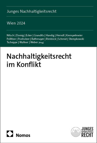 Der dritte Band des Forschungsnetzwerks Junges Nachhaltigkeitsrecht steht ganz im Zeichen der verschiedenartigen Konfliktlagen, denen das Nachhaltigkeitsrecht ausgesetzt ist. Die Beiträge identifizieren und analysieren Konflikte, die sich einerseits aus zur Nachhaltigkeit gegenläufigen Interessen, andererseits aus dem Widerspruch verschiedener Nachhaltigkeitsziele ergeben. Durch die fachliche Breite der Themen, die sich vom Völker- über das Unions-, Unternehmens-, Zivil-, Straf- und Verfassungsrecht bis hin zur Rechtstheorie und -geschichte erstreckt, wird die Notwendigkeit intradisziplinären Dialogs zur Lösung nachhaltigkeitsbezogener Herausforderungen unterstrichen. Mit Beiträgen von Dr. Felix Aiwanger | Dr. Alexander Brade | Alice Dugerdil | Mag. Sophie Dukarm | Leonard Elste | Dr. Jakob Hohnerlein | Dr. Mathias Honer | Vincent Hoppmann | Dr. Hans Flemming Maltzahn | Veronika Marhold, LL.M. | Simon A. Miller, LL.M. MBA | Dr. Maximilian Nussbaum | Janine Prantl, LL.M. | Paulina Rundel | Mag. Dr. Christoph M. Stoll, MA. | Alexander Wimmer | Aenne Wulferding