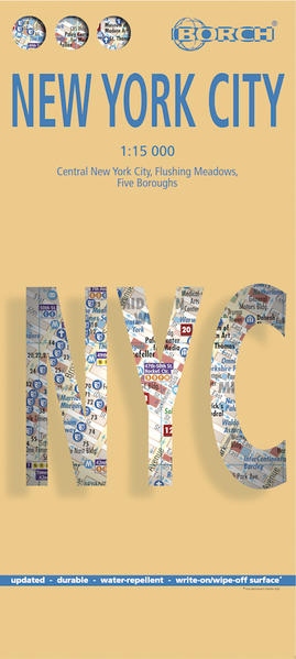 Unsere folienbeschichtete, gefaltete Karte von New York City in der 16. Auflage beinhaltet: New York City Zentrum 1:15 000, Flushing Meadows 1:15 000, Five Boroughs 1:100 000, das öffentliche Verkehrsnetz von New York City, eine administrative Übersichtskarte der USA mit Zeitzonen. Borch Maps sind leicht zu falten, langlebig und wasserabweisend mit einer abwischbaren Oberfläche. Borch Maps zeigen Hotels, Museen, Monumente, Märkte, Linien des öffentlichen Verkehrsnetzes, Sehenswürdigkeiten, nützliche Statistiken, Umrechnungstabellen für Temperaturen, Maße und Gewichte, Klimadiagramme mit Temperaturen, Sonnenscheindauer, Niederschlag und Luftfeuchtigkeit, Übersichtskarten, Zeitzonen und vieles mehr... Format: 990 mm x 494 mm