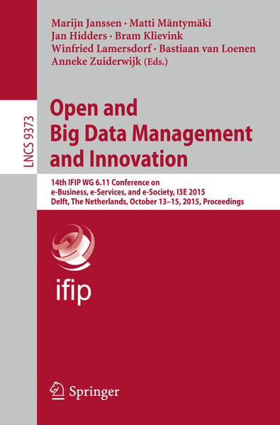 This book constitutes the refereed conference proceedings of the 14th IFIP WG 6.11 Conference on e-Business, e-Services and e-Society, I3E 2015, held in Delft, The Netherlands, in October 2015. The 40 revised full papers presented together with 1 keynote panel were carefully reviewed and selected from 65 submissions. They are organized in the following topical sections: adoption; big and open data; e-business, e-services,, and e-society; and witness workshop.