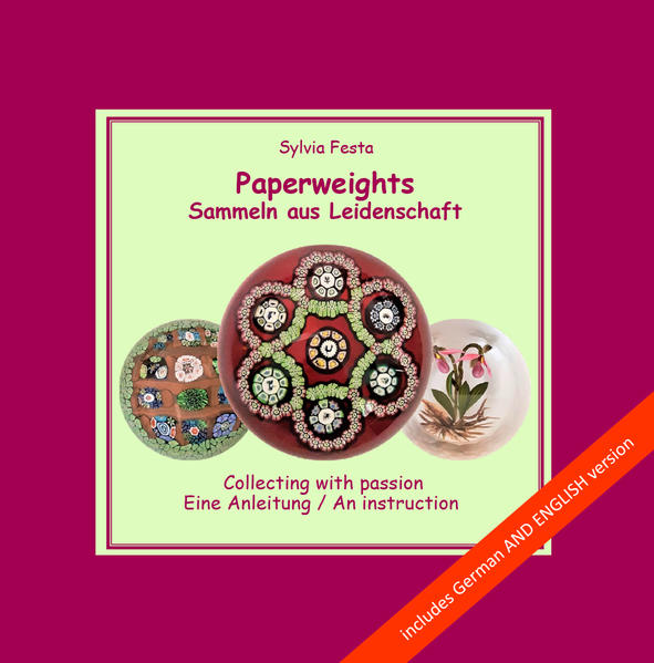Jeder, der einen Paperweight in Händen hält, beginnt sofort ihn zu streicheln, denn das kühle, glatte, kugelige Glas in dem sich die Umgebung spiegelt, hat einen ganz besonderen Reiz! Die wunderschönen gläsernen Objekte mit ihrem faszinierenden, durch das Glas vergrößerten Innenleben zieht jeden magisch an und lässt uns staunen, mit wie viel Phantasie und handwerk-lichem Können diese kleinen Kunstwerke erschaffen wurden. Paperweights werden seit der Mitte des 19.Jahrhunderts produziert; ab 1925, als das Auktionshaus Sothebys eine erste Paperweight-Auktion abhielt, sind sie als eine eigene Form der angewandten Kunst anerkannt und wer ein "richtiger Sammler" werden will, der möchte bald mehr über die Objekte seiner Begierde wissen: Woher stammen sie? Wer hat sie gemacht? Wann wurden sie hergestellt? Die größte Frage lautet dann aber meist: woher bekomme ich seriöse Informationen? Im Internet werden Unmengen an Paperweights als antik, klassisch, wertvoll angepriesen, obwohl sie es gar nicht sind und wie soll man da als unbedarfter Laie die Spreu vom Weizen trennen? Paperweights zu sammeln ist aber nicht nur eine Frage des Geldbeutels, denn so mancher Flohmarktfund hat sich - mit dem nötigen Fachwissen - schon als wahres Schätzchen entpuppt! Dieses Buch ist nun als übersichtliche Einstiegshilfe gedacht, in dem die Grundlagen des Sammelns mit Hilfe vieler erklärender Bilder und verständlicher Texte in Kurzform zusammengefasst sind. Mögen die vielen Tipps und Hinweise zum Sammeln der wundervollen Paperweights anregen und der weltweiten Sammlergemeinde das eine oder andere neue Mitglied bescheren... Verschenkt, vielleicht gemeinsam mit einem hübschen Paperweight, will dieses Buch Jung und Alt zum liebevollen, aber auch fundierten Sammeln dieser schönen Objekte der angewandten Kunst anregen....
