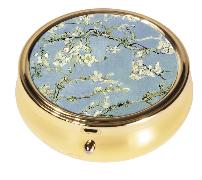 Pillendose gross. gold, rund, Van Gogh Sonnenblumen