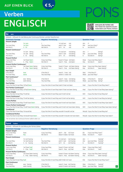 Die kompakte Übersicht mit Verbeformen und Konjugationen