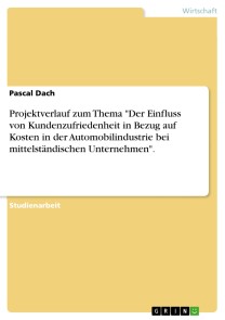 Pascal DachStudienarbeit aus dem Jahr 2016 im Fachbereich BWL - Sonstiges, Note: 1,8, Steinbeis-Hochschule Berlin, Sprache: Deutsch, Abstract: Diese Projektstudienarbeit soll eine Orientierung über den bisherigen Projektverlauf zum Thema „Der Einfluss von Kundenzufriedenheit in Bezug auf Kosten in der Automobilindustrie bei mittelständischen Unternehmen“ geben. Sie soll über erlernte Projektmanagementinstrumente den Verlauf vom Projektbeginn, bis zum aktuellen Projektstand aufzeigen. Zusätzlich sollen über die Instrumente mögliche Chancen und Risiken ermittelt werden. Anschließend sollen Lösungen zu den aufgetretenen Problemen vorgestellt und weitere Möglichkeiten gefunden werden, um noch vorhandene Risiken im Projekt, lösen bzw. minimieren zu können.