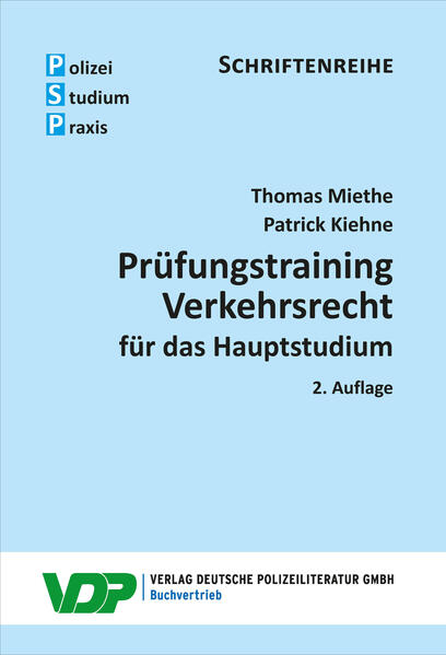 Mit diesem Buch können Sie sich gezielt auf eine Klausur oder andere Prüfung im Verkehrsrecht vorbereiten. Der Schwerpunkt in der Darstellung liegt dabei auf den klassischen klausurrelevanten Problemstellungen. Anschaulich und kompakt werden Sie mit Hilfe von Erläuterungen, Grafiken, Klausurbeispielen und Übungen optimal auf ihre Prüfung vorbereitet. Entlang der aktuellen Prüfungsschemata und der herrschenden Meinung orientieren sich die Autoren dabei einerseits an den zulassungs- und fahrerlaubnisrechtlichen Inhalten, andererseits an den verkehrsstrafrechtlichen Inhalten des Studiums der Polizei, wie sie im Curriculum des Hauptstudiums 1 und 2 an der Hochschule für Polizei und öffentlichen Verwaltung NRW beschrieben sind. Die Neuauflage berücksichtigt dazu sämtliche relevante Gesetzesänderungen, darunter insbesondere das Verbot des Cannabiskonsums im Straßenverkehr sowie die Neufassung des Pflichtversicherungsgesetzes und der Fahrzeugzulassungsverordnung.