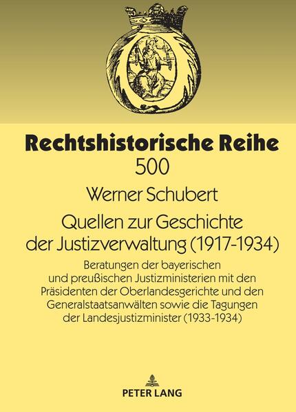 Die Geschichte der Justizverwaltung, die den Justizministerien sowie den Gerichtspräsidenten und den Generalstaatsanwälten zusteht, ist bisher, von der NS-Zeit abgesehen, für das 20. Jahrhundert nur selten Gegenstand besonderer rechtsgeschichtlicher Darstellungen gewesen. Eine wichtige Quelle für die Justizverwaltungsgeschichte bilden die in der Edition wiedergegebenen Protokolle der Beratungen der Justizministerien Bayerns und Preußens mit den Präsidenten der Oberlandesgerichte und den Generalstaatsanwälten von 1917 bis 1934. Ferner werden wiedergegeben die Protokolle von vier Tagungen der Landesjustizminister von 1933-1934. Themen der Beratungen waren u.a.: Richterbesoldung, dienstliche Beurteilung der Richter, bedingte Begnadigung, Pressestellen der Gerichte, Simultanzulassung von Rechtsanwälten, Juristenausbildung und 1933/34 Berufsverbot für jüdische Rechtsanwälte sowie das Verhältnis zwischen den Parteistellen und der Justiz in Bayern.