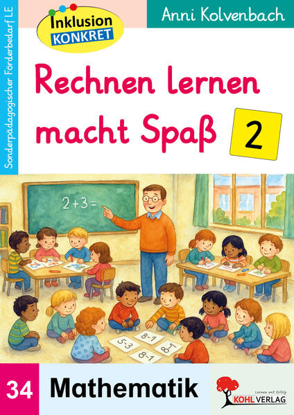 Dieses sonderpädagogische Fördermaterial aus der bewährten Reihe Inklusion konkret wurde speziell für den Förderbedarf Lernen (LE) sowie für den inklusiven Mathematikunterricht entwickelt. Der Band ist für den Einsatz in der Grundschule von Klasse 1 bis 4 konzipiert und unterstützt Lehrkräfte bei der gezielten Förderung grundlegender mathematischer Kompetenzen. Die übersichtlich aufgebauten Arbeitsblätter bieten sehr einfache Aufgabenstellungen, die in drei klar abgestuften Niveaustufen zur Differenzierung angelegt sind. Dadurch eignet sich das Material besonders für heterogene Lerngruppen sowie für Kinder mit Dyskalkulie oder Schwierigkeiten im mathematischen Basisbereich. Gefördert werden unter anderem Grundrechenarten, Zahlenverständnis, Zahlenbeziehungen, Mengenerfassung und die Zahlenraumerfassung. Auch das Zuordnen, das Erkennen von Muster & Struktur sowie grundlegende Inhalte der Geometrie spielen eine zentrale Rolle. Mit dem zweiten Band "Rechnen lernen macht Spaß" legt Anni Kolvenbach ein praxisnahes Arbeitsheft vor, das Mathematik durch Geschichten und Rechengeschichten lebensnah und verständlich vermittelt. Die Aufgaben sind so gestaltet, dass sie sowohl Konzentration als auch Aufmerksamkeitstraining gezielt unterstützen. Gleichzeitig fördern sie die Wahrnehmung von Mustern, die Orientierung im Zahlenraum und den sicheren Umgang mit Zahlen. Das klar strukturierte Inhaltsverzeichnis erleichtert die Unterrichtsplanung und bietet eine verlässliche Orientierung für den Schulalltag. Im einfühlsamen Vorwort werden die besonderen Herausforderungen im Umgang mit Lernschwierigkeiten thematisiert und die Bedeutung individueller Förderung hervorgehoben. Das Material verbindet Inhalte aus Vorschule, Grundschule und sonderpädagogischer Förderung zu einem stimmigen Gesamtkonzept. Alle Kopiervorlagen sind sofort einsetzbar, ohne aufwendige Vorbereitung nutzbar und unterstützen einen motivierenden, spielerischen Zugang zur Mathematik. Durch die Kombination aus Grundrechenarten, Geometrie, Muster, Zahlenverständnis und lebensnahen Aufgaben entsteht ein ganzheitliches Förderangebot. Der Fokus liegt dabei stets auf dem gemeinsamen Lernen und dem Aufbau von Sicherheit im Umgang mit Zahlen. Dieses Arbeitsheft ist ein wertvolles Fördermaterial für den inklusiven Unterricht und für die individuelle Förderung im sonderpädagogischen Kontext. Es trägt dazu bei, mathematische Grundlagen nachhaltig zu festigen und Kindern Freude, Motivation und Selbstvertrauen im Lernen zu vermitteln. 32 Seiten, mit Lösungen