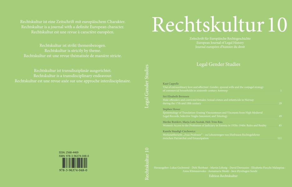 février 2022, env. 128 pages, Rechtskultur Zeitschrift für Europäische Rechtsgeschichte, Bd. 10, Allemand