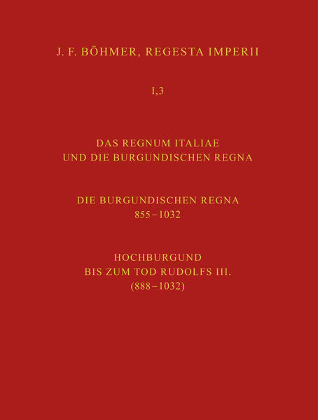 Band 3: Die Regesten des Regnum Italiae und der burgundischen Regna. Teil 4: Die Regesten der burgundischen Regna 855-1032. Fasz. 2: Hochburgund bis zum Tod Rudolfs III. (888-1032)